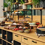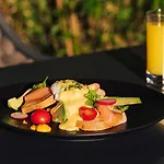 Podawane jest śniadanie w restauracji.